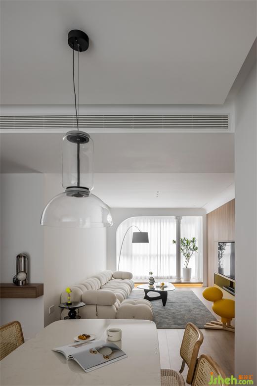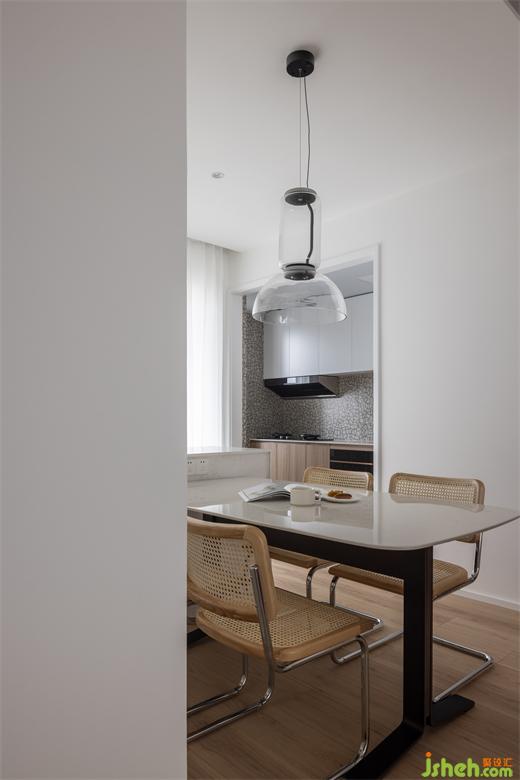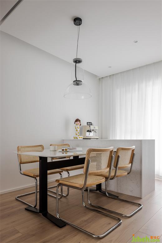 餐廳與客廳相連,天津天霖園裝修設(shè)計在色彩和材料的使用上保持了空間的連貫性,開放式的設(shè)計讓有限的空間呈現(xiàn)出更為寬闊的視覺效果。