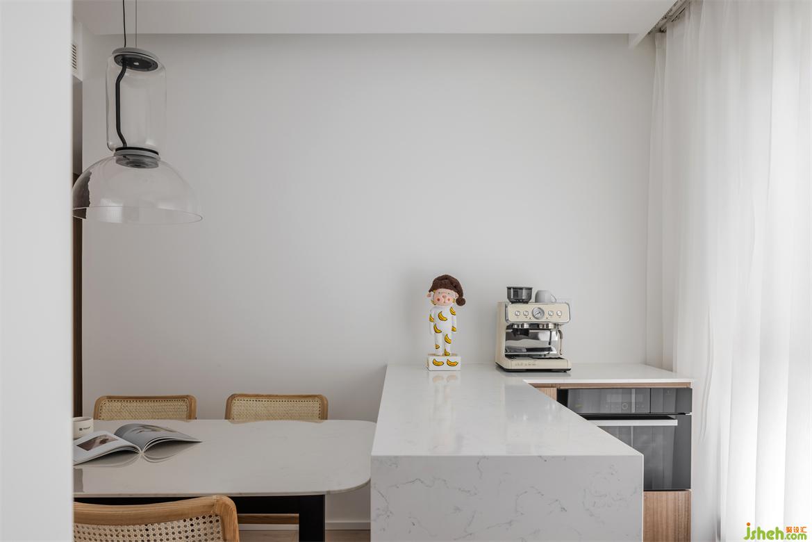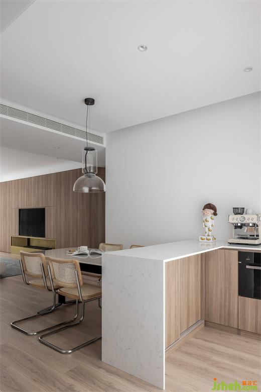 開放式的廚房與餐廳、客廳巧妙融合,天津天霖園裝修設(shè)計最大化利用屋內(nèi)空間,使各個區(qū)域極具關(guān)聯(lián)又互不干擾,增強了餐廳與廚房的互動性。