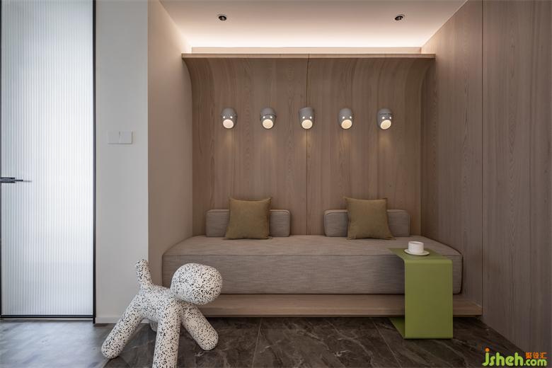 客廳以原木色為基調(diào),簡約利落的家具搭配,溫潤的材質(zhì)與精致的色彩,是為休息室營造了極佳的環(huán)境氛圍。
