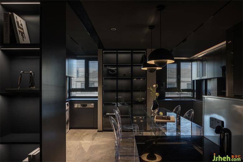 通過對(duì)場(chǎng)域?qū)傩缘纳疃韧诰颍瑥N房也被賦予了深邃與流動(dòng)并存的設(shè)計(jì)蘊(yùn)涵。明滅光影的虛實(shí)互映、空間尺度的精準(zhǔn)把握,融府裝修設(shè)計(jì)讓烹飪、交流、聚集的實(shí)質(zhì)需求得到滿足,同時(shí)也暗示著多維的場(chǎng)景敘事可能