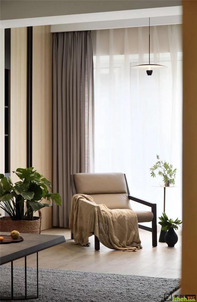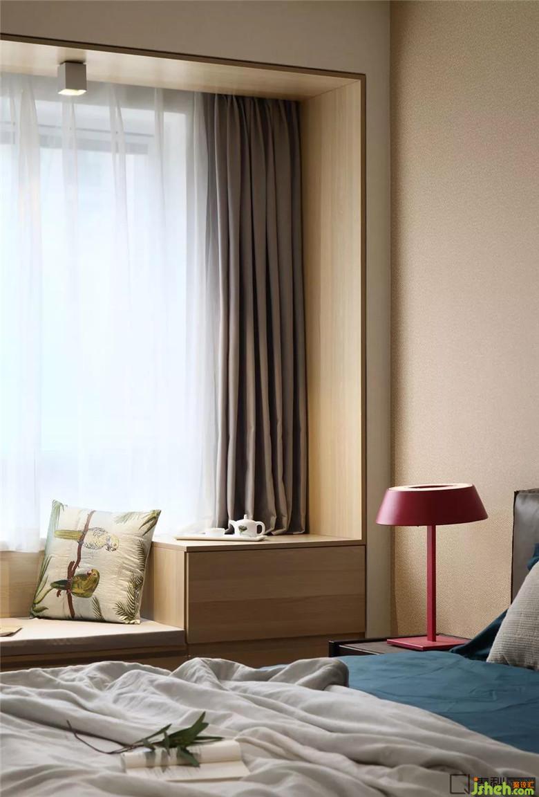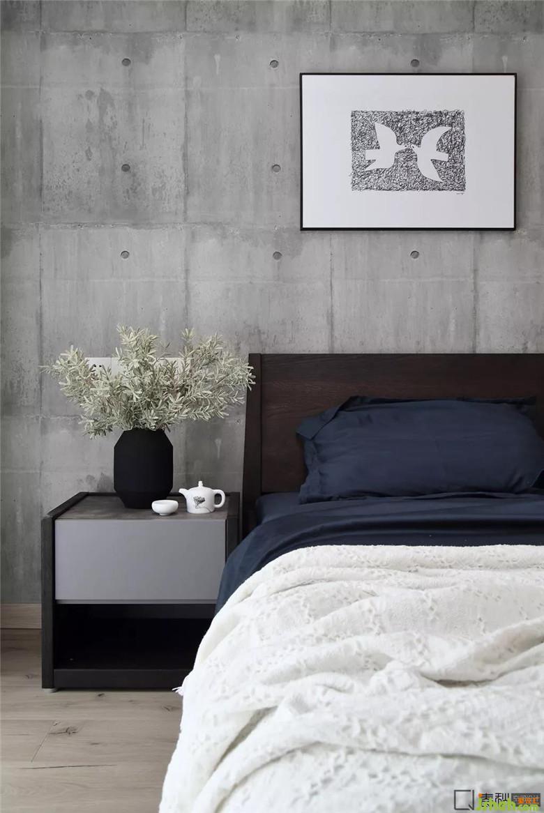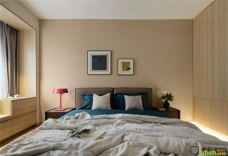 客臥設計十分簡潔,沒有多余裝飾,床品的色調(diào)和墻色保持一致,室內(nèi)設計師為了營造溫馨感和賓至如歸感,用淺色原木色與與其接近的裸色及駝色來打造。特別挑選的掛畫進一步提升了空間的品質(zhì)。