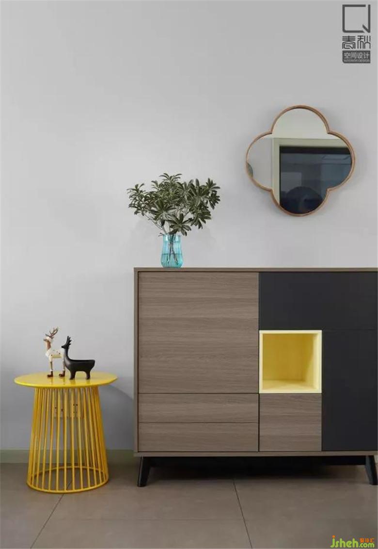 門旁的收納柜,可以很好地保存雜亂無章的拖鞋等。室內(nèi)設(shè)計師方方正正的設(shè)計,生活幾何,讓整個家顯得井條有序。