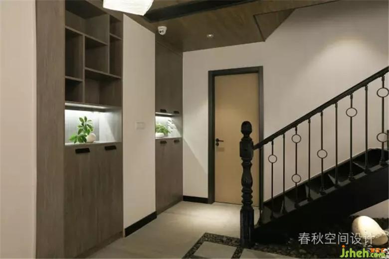 一樓連接至二樓的樓梯走廊,室內(nèi)設(shè)計(jì)師在保存中國(guó)風(fēng)古樸美觀的基礎(chǔ)上,體現(xiàn)時(shí)尚感和舒適度,穩(wěn)重又不失活潑,寫意又不乏靈秀。