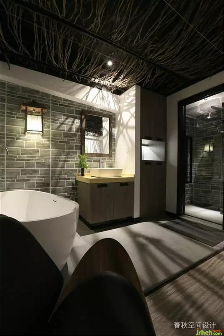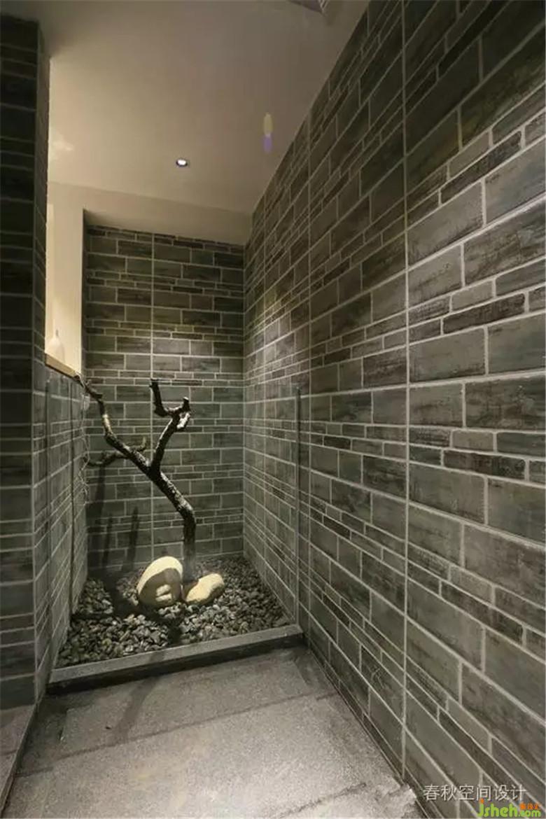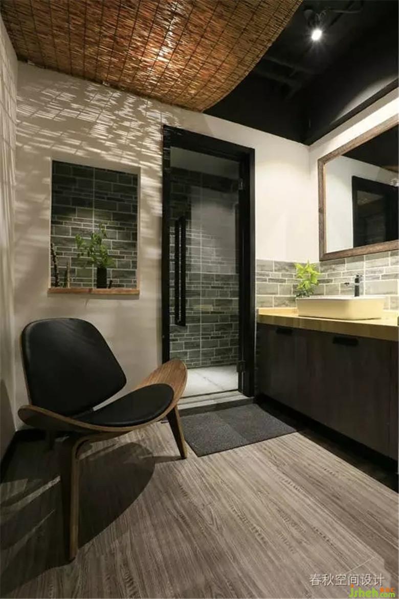 室內(nèi)設(shè)計師以深棕色為主調(diào),輔以灰色墻磚,頂面去繁就簡,既沒有復(fù)雜的造型,也沒有主燈的累贅。