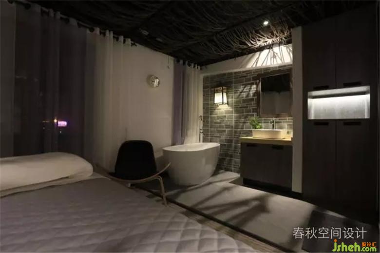 室內(nèi)設(shè)計師以灰色墻磚為主基調(diào),質(zhì)樸安靜,加上床頭一抹明亮的黃色,舒適的氣氛從整個空間里跳脫出來