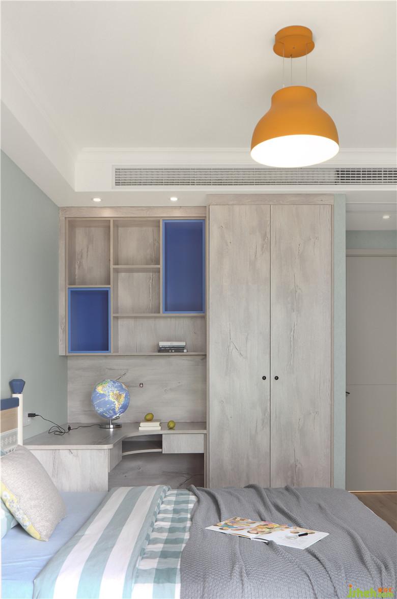 室內(nèi)設(shè)計(jì)師設(shè)計(jì)的灰白帶有星球壁畫的墻面,在點(diǎn)點(diǎn)藍(lán)色家具的映襯下,讓人仿佛徜徉在浩瀚宇宙,充滿了對(duì)未知世界的遐思。