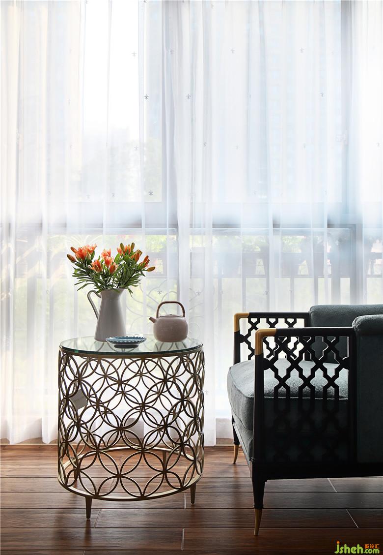 整鋪的實(shí)木地板、茶幾、沙發(fā)色系協(xié)調(diào)一致,室內(nèi)設(shè)計(jì)師設(shè)計(jì)的黃灰相間的背景墻,讓人眼前一亮,早晨的太陽(yáng)光,透過(guò)薄紗偷偷的鉆進(jìn)客廳,俏皮的告訴主人這又是美好新一天。