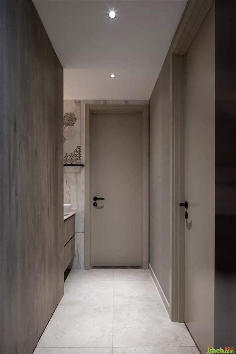 主臥過道柜與內(nèi)衛(wèi)交相呼應(yīng),盥洗梳妝、沐浴更衣、整理儀表這一系列日常動作在最短的動線里如行云流水般順暢,一氣呵成!