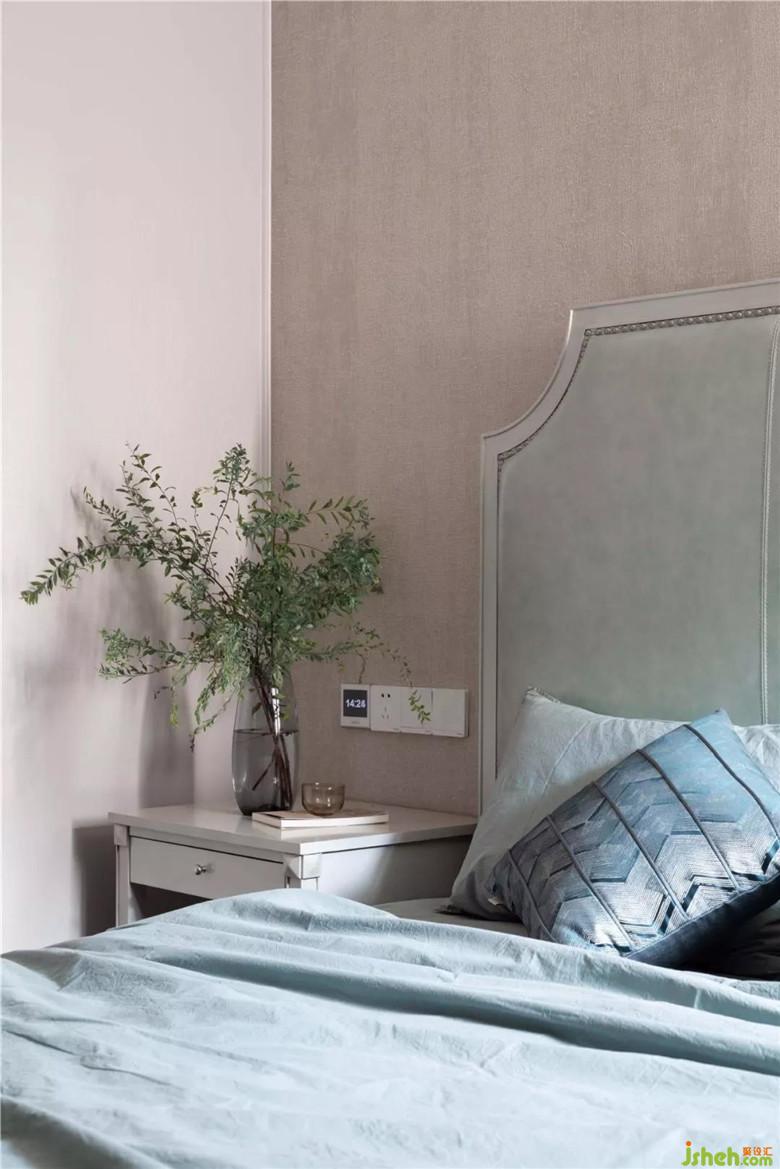 莫蘭迪色系的搭配,賞心悅目,按摩著視覺神經(jīng)。床頭一株綠植,讓自然的清新陪伴屋主夫婦一夜好眠。裝修公司