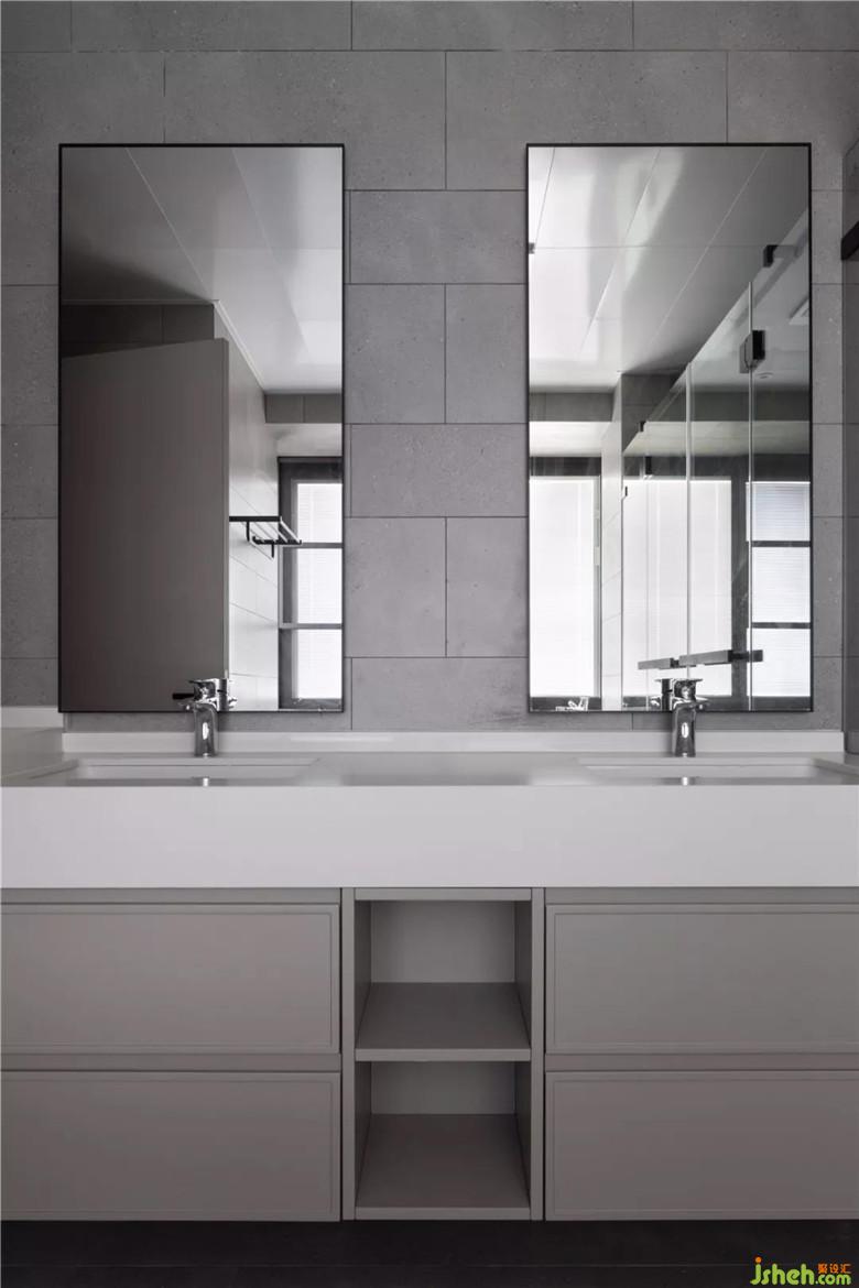 主臥里的衛(wèi)生間,硬朗簡練的雙臺盆設計,讓業(yè)主夫婦起床后,可以同時進行洗漱,一同開啟新一天的美好。