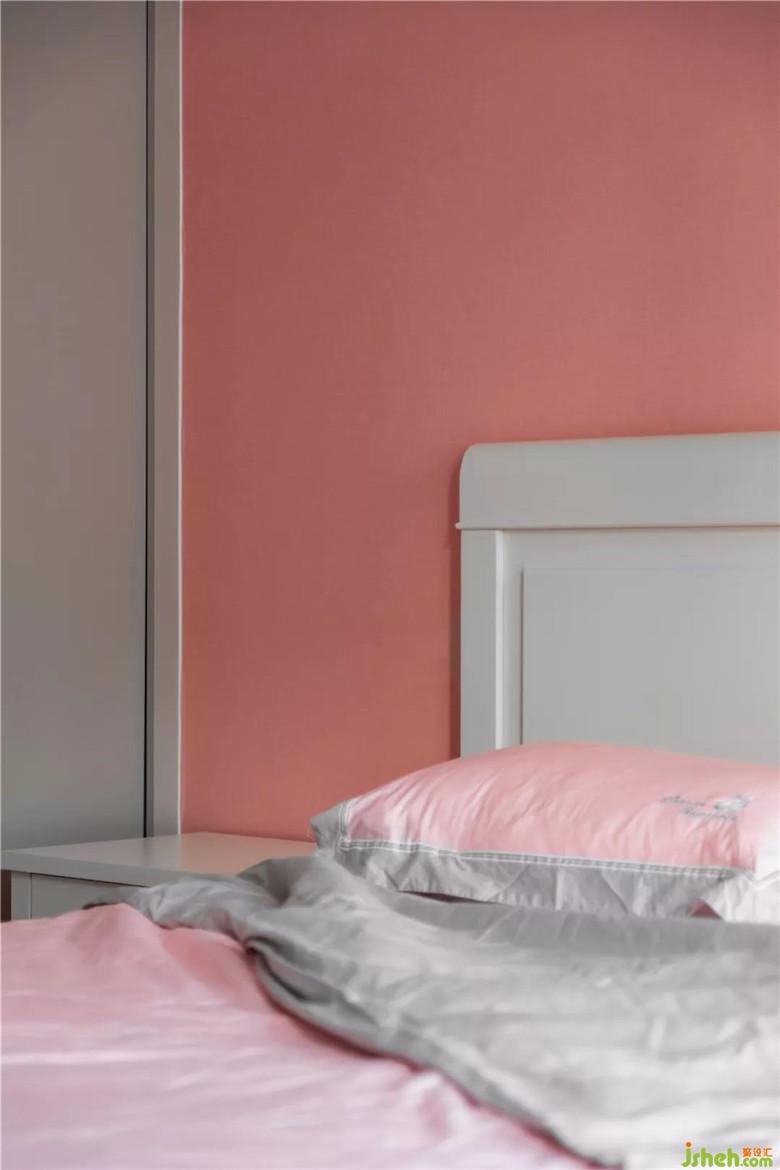 簡潔的吊頂設計,保證了臥室空間的高度,免除了壓迫感。粉與白組合出小女孩甜美的夢想。