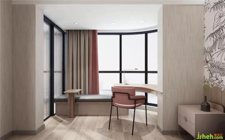 圓角陽臺去除移門,將采光極致利用,軟包長椅與弧形書桌銜接,打造學(xué)習(xí)與休閑的好地點,加上馬卡龍色系的點綴,生活變得愜意美好。裝修公司