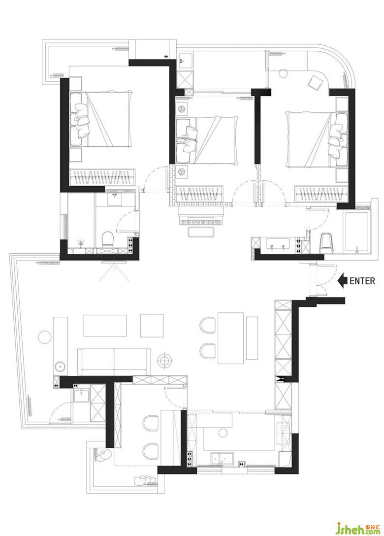 每個工作日的早晨都是一場戰(zhàn)爭,干濕分離式、雙臺盆的設(shè)計,免去了忙碌早晨對衛(wèi)生間的爭搶。