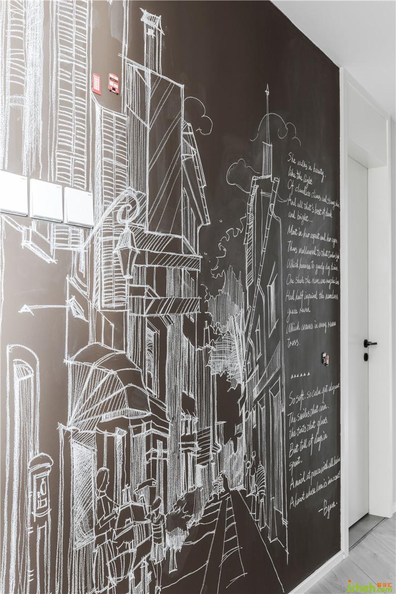 設(shè)計不是完成,也不是僅僅在做好看的設(shè)計;人與空間的距離,現(xiàn)在,將來的體驗感受,會有什么樣的變化,都是室內(nèi)設(shè)計師不斷在思考與精進的課題。小伙伴們親自手繪的黑板墻畫從廚房外墻這頭一直延伸到通道那頭,撞破小空間的門扇規(guī)律,自由更換不同的通道場景,很期待新生命小小周未來在這里天馬行空的寫寫畫畫搞創(chuàng)作,現(xiàn)在由新晉父母的周先生與周太太暫時經(jīng)營。