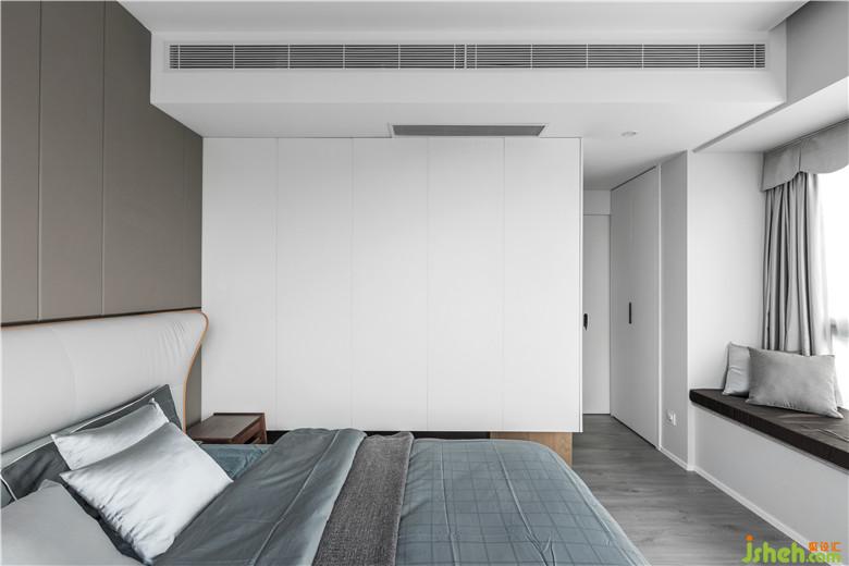 既有儲物又有分隔功能的衣柜背面,進行假門板處理,還空間一片純凈;尺寸位置是計算好讓出原中央空調(diào)回風口,原地暖也沒有破壞浪費,衣柜原設(shè)計的是整體懸空,種種原因沒有落地實現(xiàn),留下一個小遺憾,提醒著我們在落地把控上要更努力。