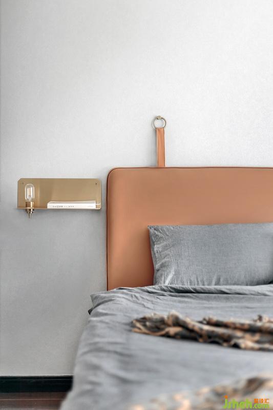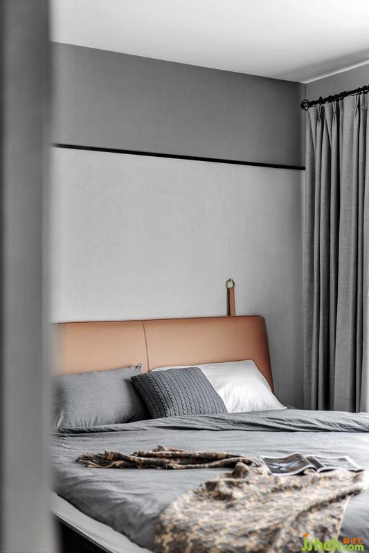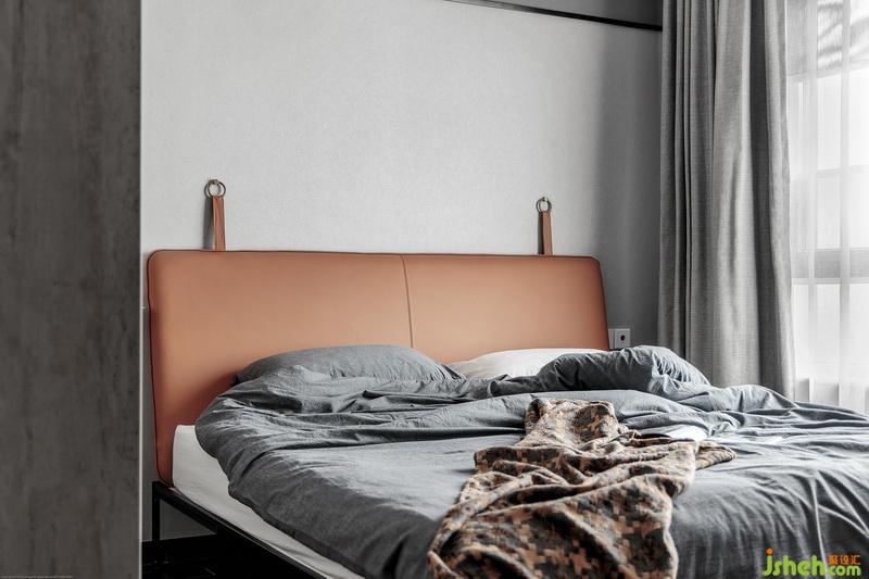 沉穩(wěn)的灰度空間,室內(nèi)設(shè)計師搭配具有復(fù)古韻味的牛皮面床靠墊,有一股率性,亦透露著本質(zhì)的細膩,保養(yǎng)清潔也是很方便。