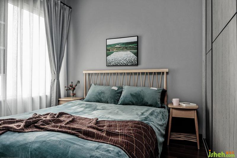 次臥目前為父母偶爾來成都準(zhǔn)備,未來作為兒童房考慮,所以現(xiàn)在不會有很強的年齡偏向性,為以后更改創(chuàng)造條件,為了保證父母的睡眠,室內(nèi)設(shè)計師選擇色調(diào)偏深,選白橡木床一部分因空間緊湊,這種床大小合適,不會很擁擠與占地,并且環(huán)保,另一方面是這種北歐簡潔和英倫優(yōu)雅氣質(zhì)的結(jié)合,是賞心悅目的,風(fēng)景畫選擇綠油油的田野風(fēng)景讓空間更具自然舒適淳樸的感覺。