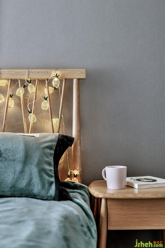 這里暫時沒有要床頭柜,也是要留給女主人添置,三寶喜歡看書,所以床頭壁燈形態(tài)考慮了閱讀置物的部分。