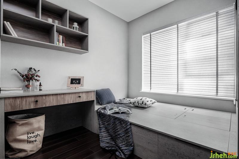 房間現(xiàn)在可以看書辦公當(dāng)書房,空間顏色比較沉靜,當(dāng)在作為多功能房的變換下,適宜性也很強。