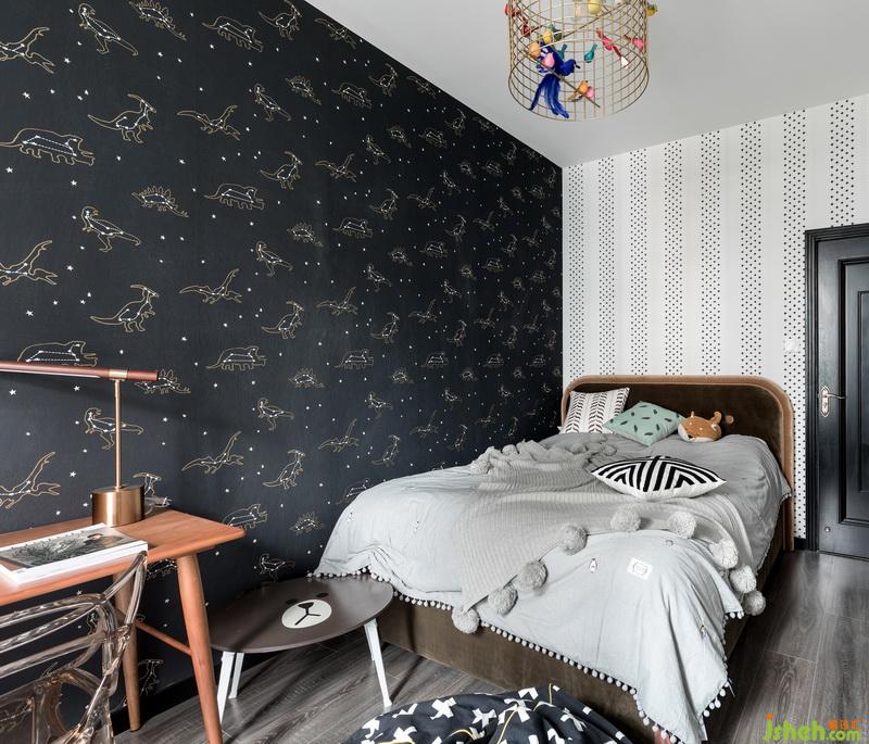 小恐龍墻紙是大家都特別喜歡的,雖然現(xiàn)在還不知道是男孩女孩,一般情況下大家選擇中性色都會(huì)選擇藍(lán)色、綠色或者黃色,而我們?yōu)槭裁磿?huì)選擇黑色的呢, 布布有一個(gè)小心思, 想要小孩子未來(lái)可以在這里穿任何彩色的衣服,綻放童年本該有的燦爛。