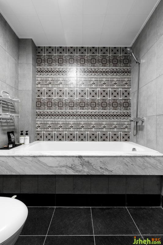 手繪印第安人小黑磚打破規(guī)律的秩序感,表達(dá)出個性的需求, 從叢林花漾空間過渡到黑白灰的衛(wèi)浴空間,有一種反差的純粹,就像布布和柴柴生活中與工作中是兩個不同角色一樣,保留一些反差的個性,那也是真實的他們。