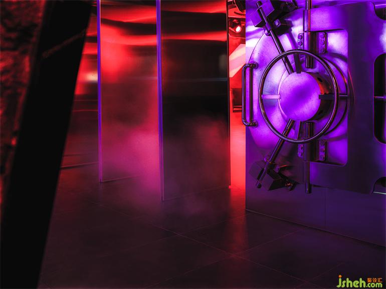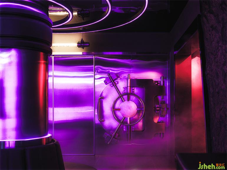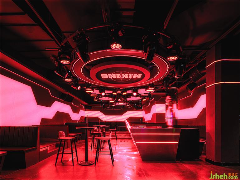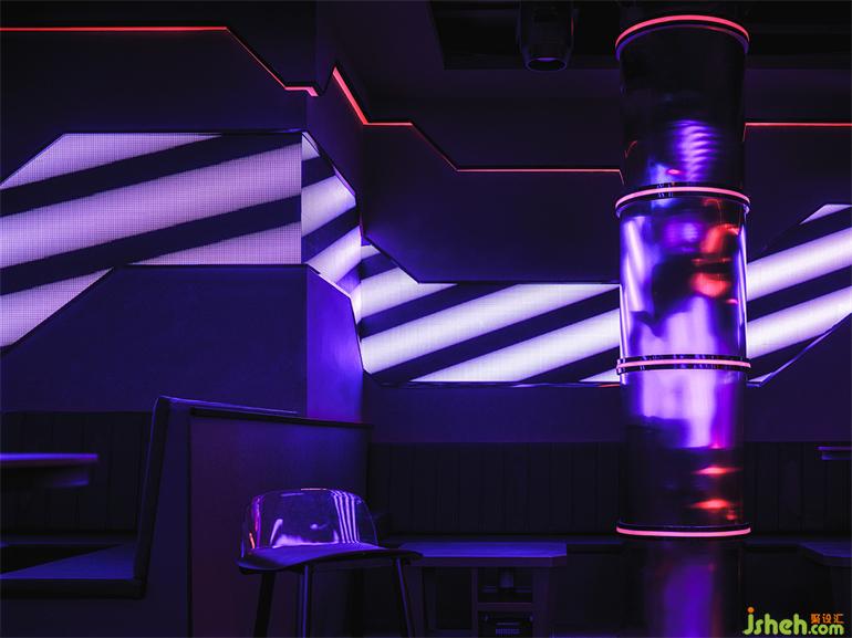 俱樂(lè)部設(shè)計(jì)可折疊的墻面,賦予了空間更多可能性。墻的另一面是舞池區(qū)域及卡座區(qū),舞池區(qū)被卡座區(qū)包圍,但通過(guò)連續(xù)統(tǒng)一的LED墻面形成了大開(kāi)放的空間氛圍??臻g中部為DJ臺(tái),圓環(huán)LED燈帶設(shè)計(jì)聚焦空間視覺(jué)焦點(diǎn)。