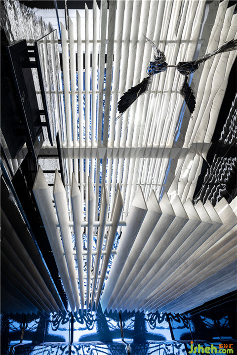 “山間的飛鳥越過頭頂,才有了陌生的目光在空中相遇。長(zhǎng)久的沉寂與蟄伏后,是對(duì)世間萬物的珍惜與熱愛?!边@個(gè)飛翔的種子,也許正是展廳設(shè)計(jì)師悄悄于空間中埋下的伏筆。