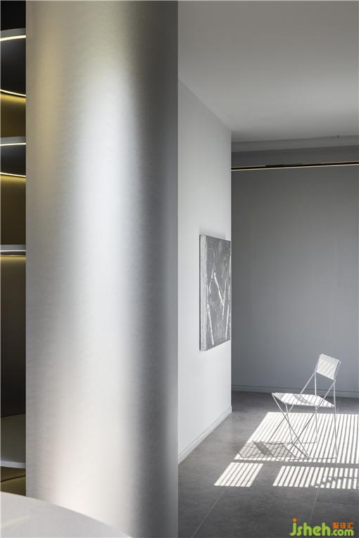 主要材料:鏡面不銹鋼、竹片/金屬板/LED、灰色水磨石、灰色乳膠漆