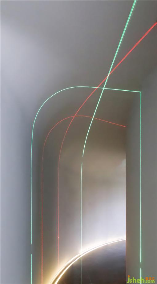 整體室內(nèi)布局也盡量運用好尺度的張馳關系,辦公室設計在每個轉(zhuǎn)折處盡力處理掉直角,弧線不因造型而為之。反而為了功能和感受去服務。