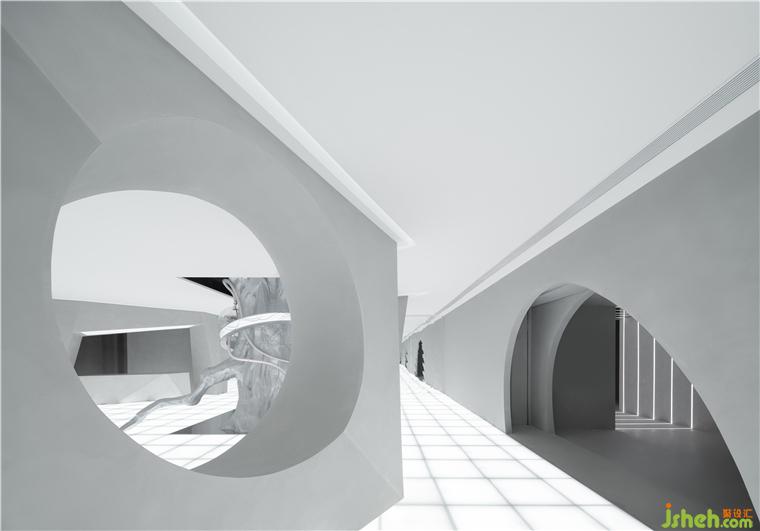以巨石陣為原型開(kāi)啟通往新世界的交錯(cuò)空間,筑起一道虛與實(shí)的任意門,時(shí)間和空間在此靜止和扭轉(zhuǎn),美術(shù)館設(shè)計(jì)幾何體的分布排列形成了由眾多小世界集合的地帶。