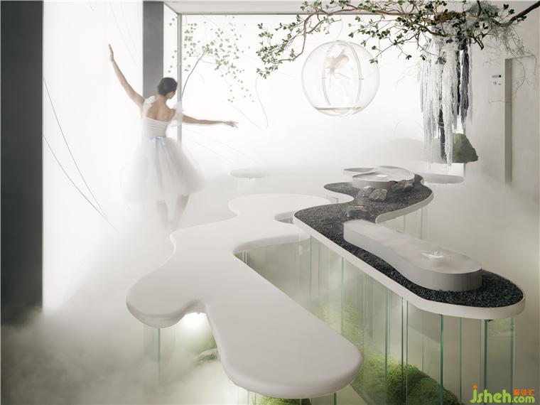 進(jìn)入等候區(qū),仿佛進(jìn)入了無人之境的自然樂園,一抹夏日清涼游走在純粹的白色之間,美術(shù)館設(shè)計極致、純凈,猶如開啟故事前的平靜。