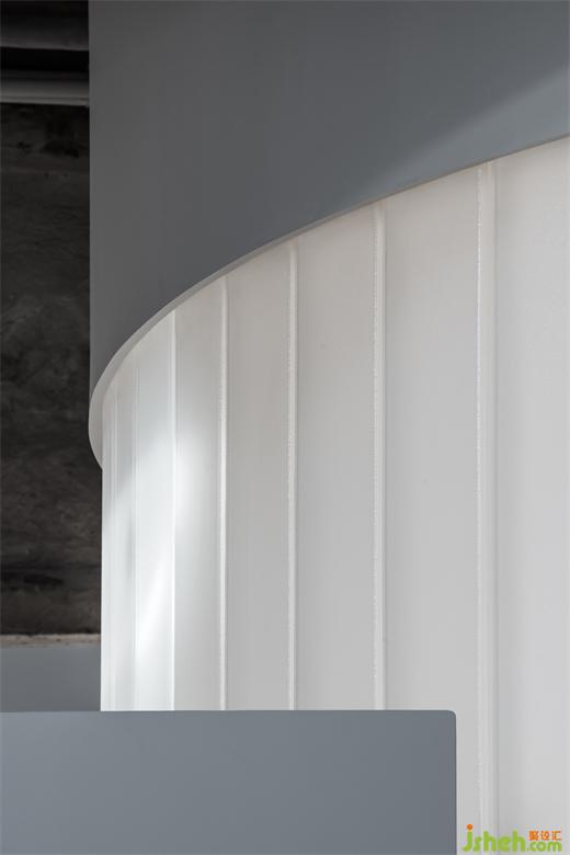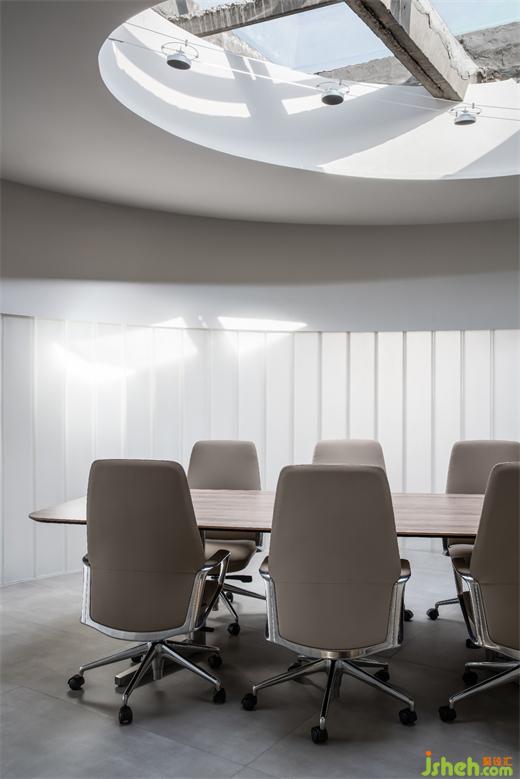 不僅盡可能的露出建筑的原始結(jié)構(gòu)以呈現(xiàn)質(zhì)樸的肌理感,更是精巧地運用豎向與橫向的條形窗戶以及天窗設(shè)計,有效地引導自然光線進入室內(nèi),總部辦公室設(shè)計巧妙地調(diào)控空間內(nèi)的明暗對比,形成既有重點照明又有柔和漫射光的光影效果,局部構(gòu)建出一種“光在其中”的詩意境界。