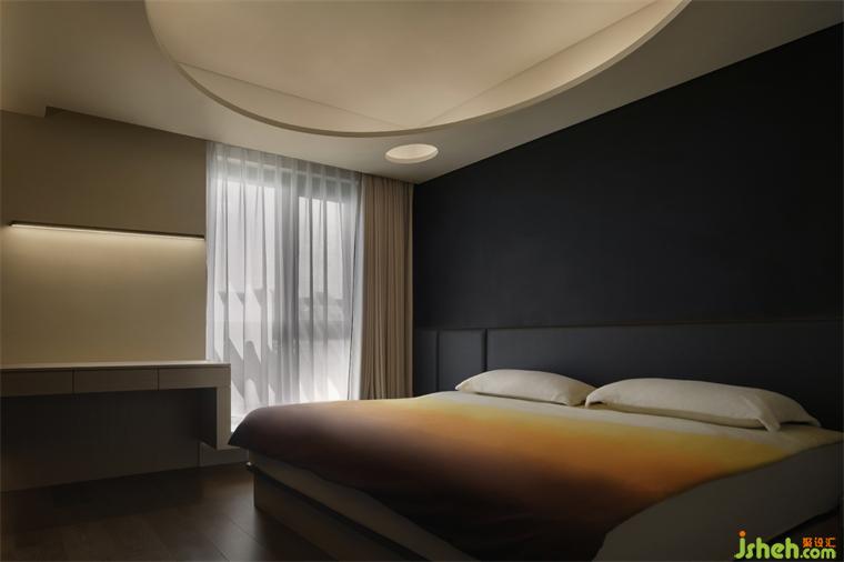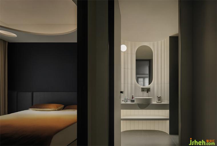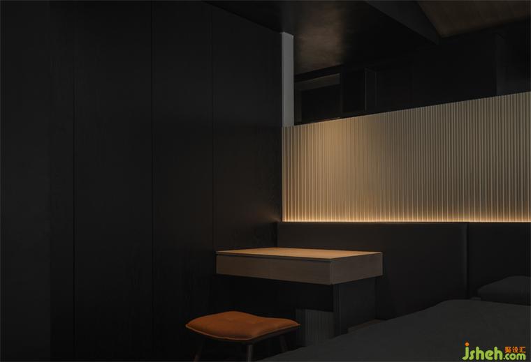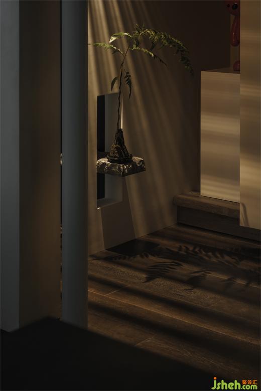 客廳窗邊也以“柱”的形態(tài)與之對仗,在保證視線通透的前提下,重構(gòu)了立面的節(jié)奏,半透明的百葉簾與微微伸出的竹子盆景,仿佛一抹水墨寫意之景從紙間躍然眼前。