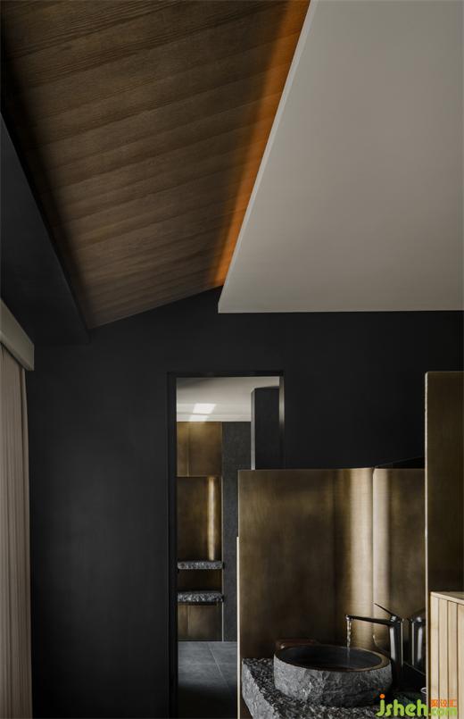 拾階而上,來到二樓處可窺見一處席地而坐品茗的茶室,竹影茶香于一室之中,別墅設(shè)計(jì)在此處復(fù)現(xiàn)的是唐人與好友“竹下忘言對紫茶”的暢快與愜意。
