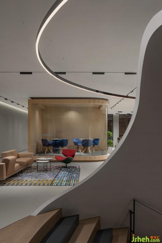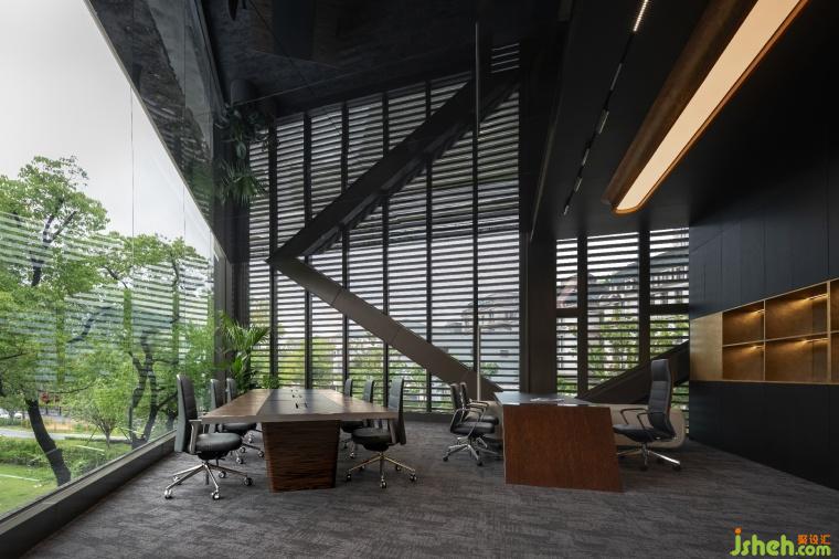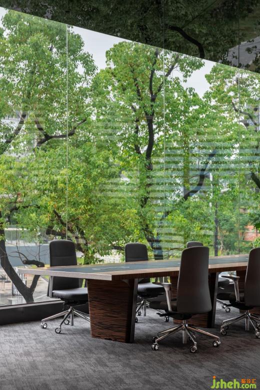 兩端分別布置了兩個透明玻璃隔斷的會議空間,不僅賦予會議室以開放、通透的視覺感受,還極大地提升了會議空間的靈活性和舒適度。