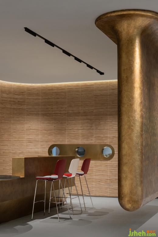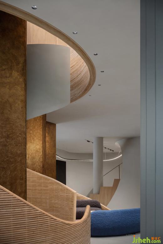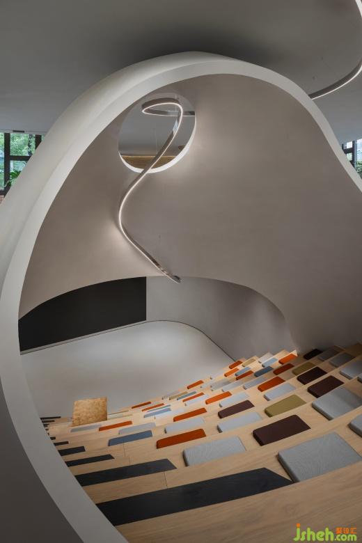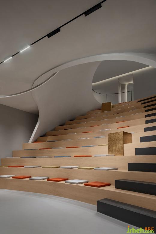 一樓入口的階梯式活動場地可以容納小規(guī)模的沙龍分享和品牌發(fā)布會等活動,當(dāng)人們順著動線往里走,豐富且多樣的社交場景組合分別圍繞著內(nèi)院展開。