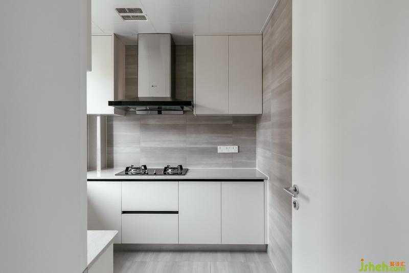 跨入廚房,單純的黑白灰,配上隱藏的拉手,讓廚房保持潔凈的狀態(tài)。#設計公司#