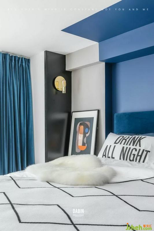 絲絨的溫柔,讓整個臥室仿佛有些融化,藍與黑卻還在負隅頑抗。兩個臥室,仿佛連接在了一起,仿佛與樓下也連接在了一起,挑空與玻璃,故事更加豐富了…… 設(shè)計公司