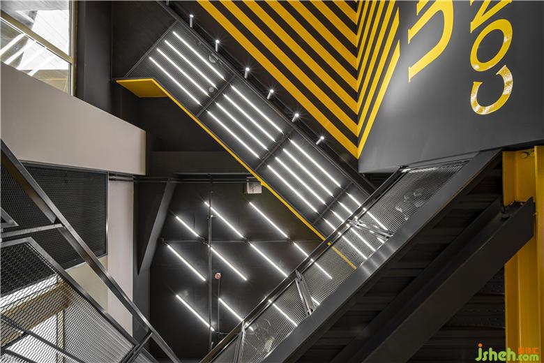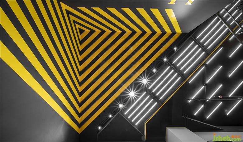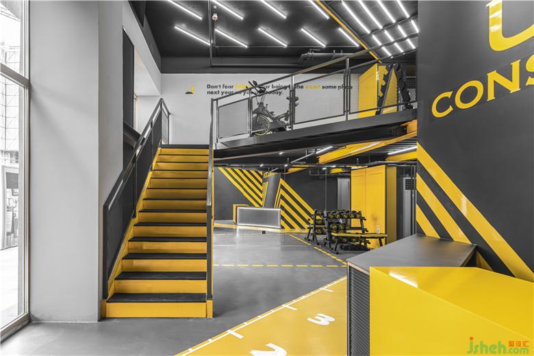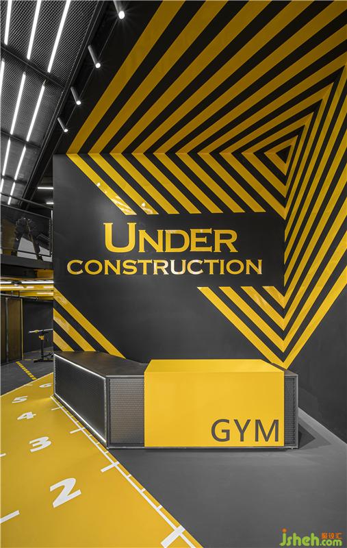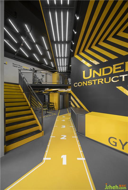 UNDER CONSTRUCTION健身房需要延續(xù)其“未完工的施工現(xiàn)場”這一設(shè)計風格,不同于以往裸露混凝土、工字鋼等結(jié)構(gòu)部件的設(shè)計手法,大觀建筑在此次健身房的設(shè)計中以夸張的“黃色警戒線”來體現(xiàn)施工現(xiàn)場的視覺效果。