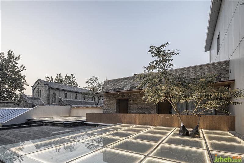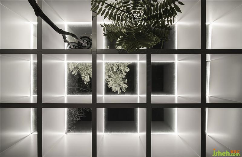 ▼夜幕下的玻璃采光頂與香椿樹Glass roof and Chinesetoon tree at night