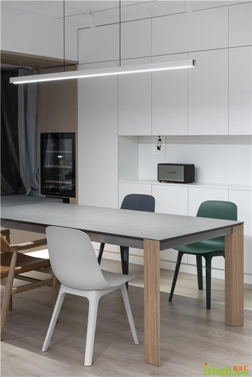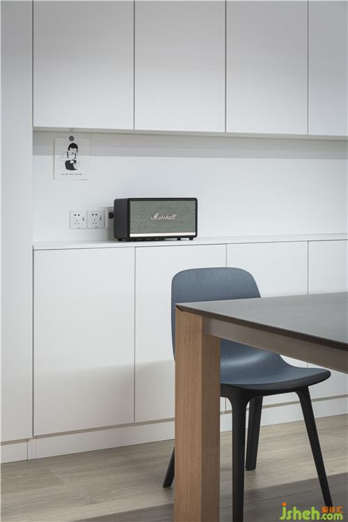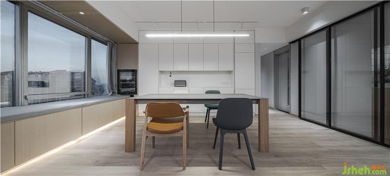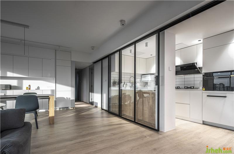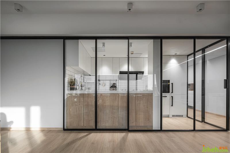 The hostess likes food and cooking and often invites friends to have parties at home on weekends and holidays. Therefore, we have completely canceled the extra partition walls of the kitchen and guest dining room in the functional layout to form an overall large space, making the entire space more accessible. Transparent and bright, the kitchen uses glass partitions that can be moved, allowing the space to be divided and combined. The hostess can also interact with family and friends while cooking, and the kitchen is no longer a closed and single "food processing and production workshop" in the traditional sense. A balance is found between the function and the emotion. The open space allows each function to coexist very well. They are independent and integrated with each other.