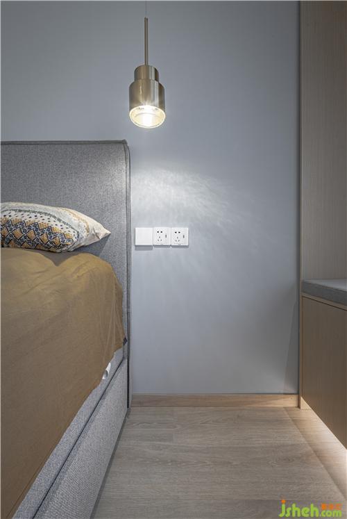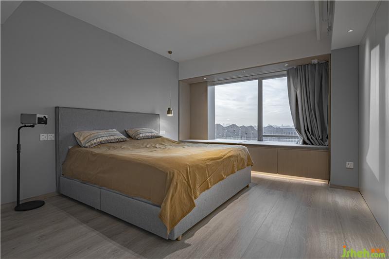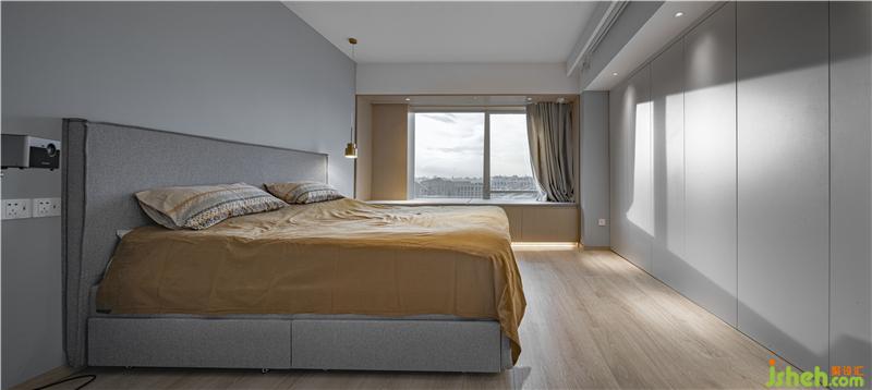 The same minimalist design techniques and language are used in the bedroom space. The hostess and hostess like to watch movies in bed before going to bed. This is their most relaxed and happy moment, and the projection becomes their best companion.