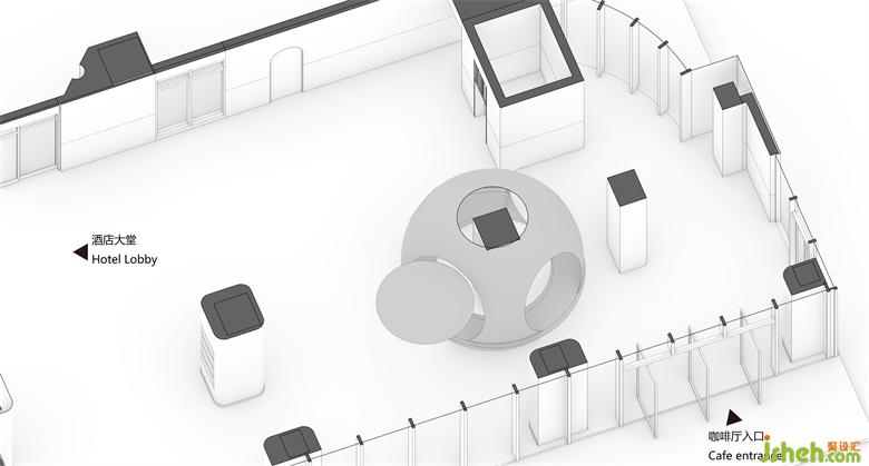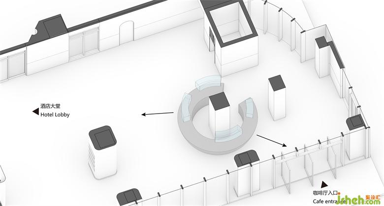 ▼移除墻體后,環(huán)繞柱子設(shè)置操作臺(tái),與主入口和大堂均形成良好的關(guān)系 After removing the walls, the worktop has been set around the beam, forming a good relationship between both the main entrance and the lobby
