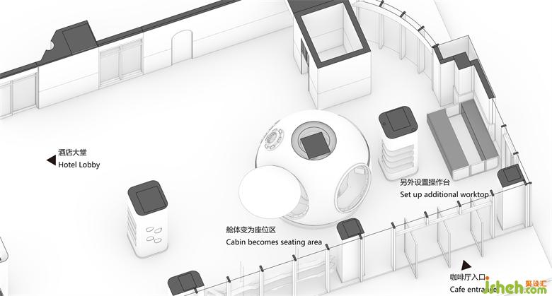 ▼設(shè)置球形艙體,以便于設(shè)置儲(chǔ)物空間和隱藏設(shè)備 Setting up spherical cabin to allow for storage space and concealment of equipment