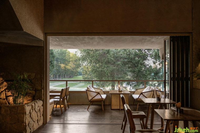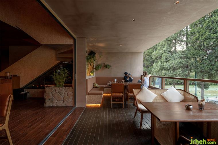 原本三面朝外的區(qū)域,從圍合的角度,西露臺(tái)最重要,剩下的南面東面重要性遞減,被打造為不同空間就餐區(qū)。