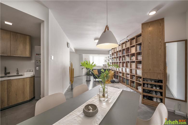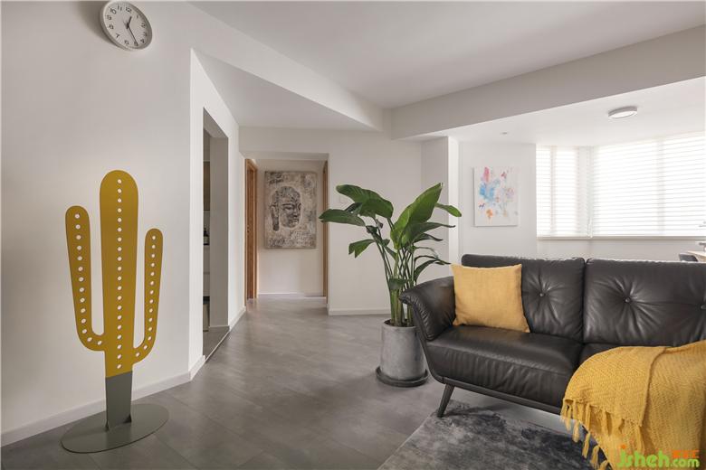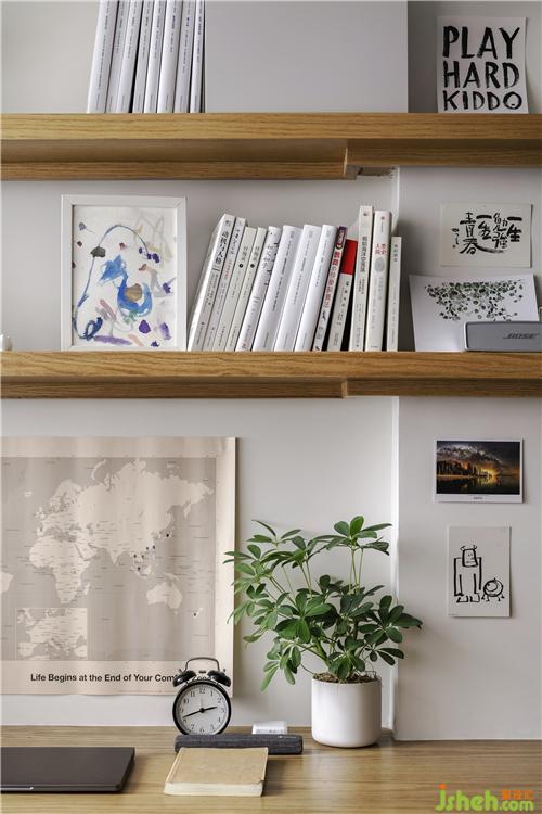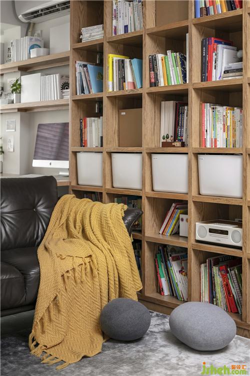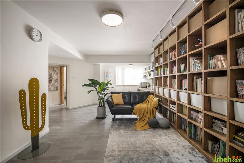 2.打開原來電視背景墻的墻面,把通道功能弱化,擴大客廳的空間感。將原來的生活陽臺包進客廳,改造成書房,加強空間的延展性。