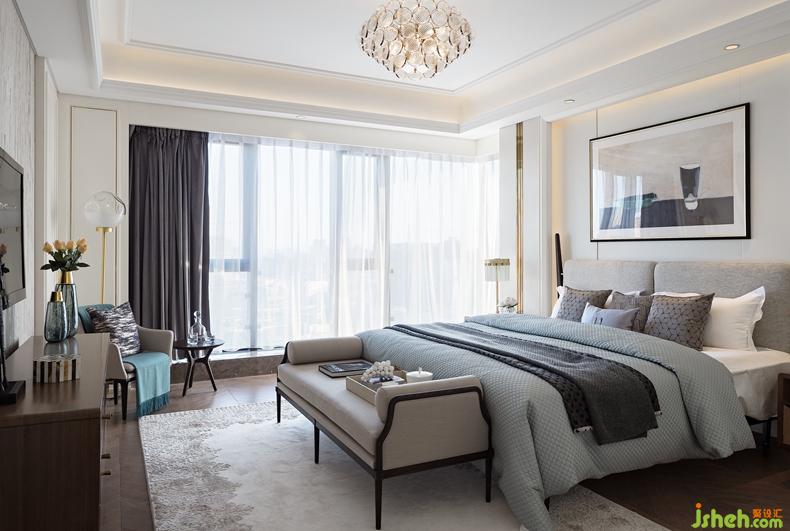 臥室將莫蘭迪色調(diào)運(yùn)用得爐火純青,所有色彩披上一層朦朧的霧,透漏著低調(diào)的品質(zhì)感;藍(lán)是貫穿全局的點(diǎn)綴色,或深或淺,靜謐自然的氛圍如一股清泉般緩緩地流淌其中。
