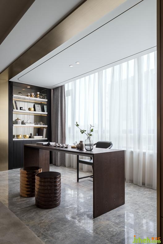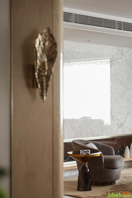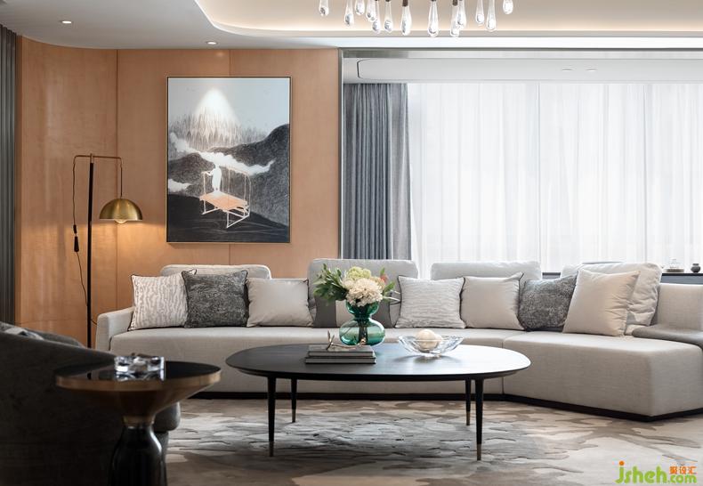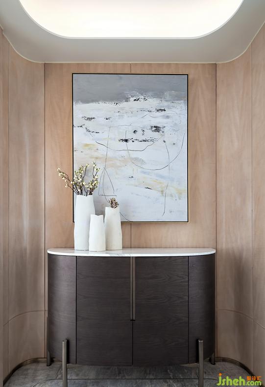 本案由深圳戴勇設計操刀,以強調豎向線、弱化橫向線的形式,將陽角改為圓角,構建流暢的動線型;若有似無的邊界圍合著進退得宜的空間尺度。全屋木飾面采用加拿大楓影木,質感細膩溫潤,做為起承轉合的背景色柔和而不張揚,大地色系作為主調將居室格調渲染得更為溫暖雅致。