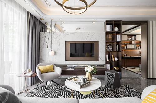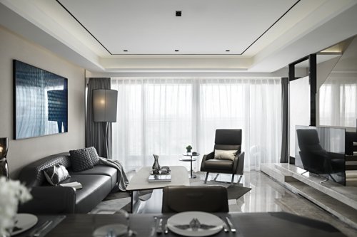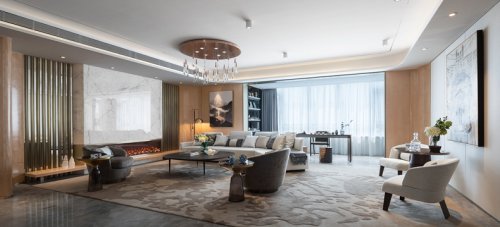 主要材料:新云灰云石光面、爵士白云石光面、水墨玉云石光面、紫山水云石光面、胡桃木飾面、墻紙、地毯、布藝等