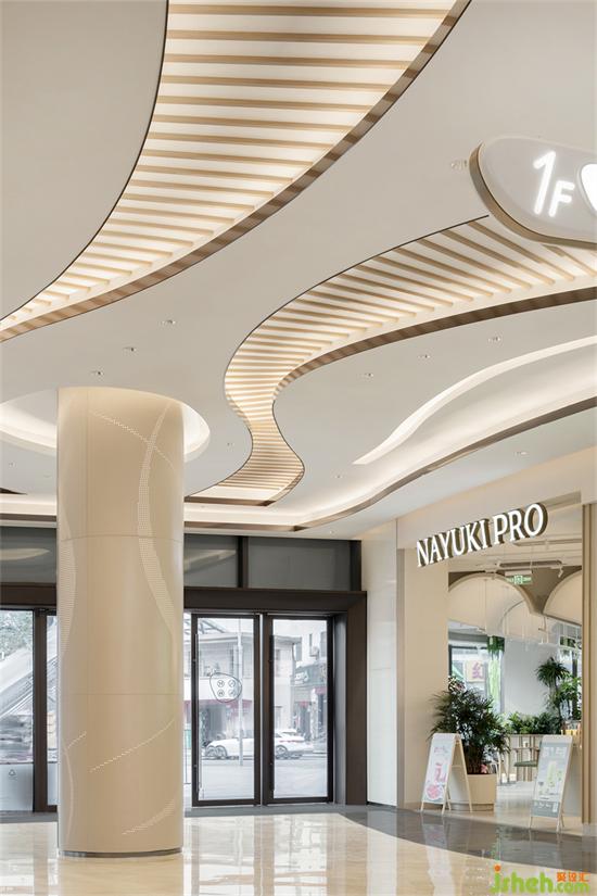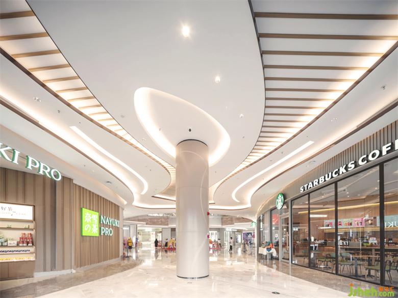 整體空間以白色、米色、香檳色為主色調(diào),簡潔大氣,開闊視覺空間的同時,呈現(xiàn)自然舒適的溫馨感受,同時,在室內(nèi)空間各個節(jié)點,結(jié)合各業(yè)態(tài)特色,商場設(shè)計將漫步海岸線的目之所及,通過富有變化的靈動形態(tài)悄然融入。